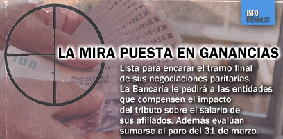 Sin embargo el elemento crucial en las negociaciones es el impacto del impuesto a las Ganancias sobre los salarios de los empleados. En ese sentido, y ante la falta de resoluciones de fondo, el gremio irá con el objetivo de lograr que las entidades compensen por esos descuentos a sus empleados.