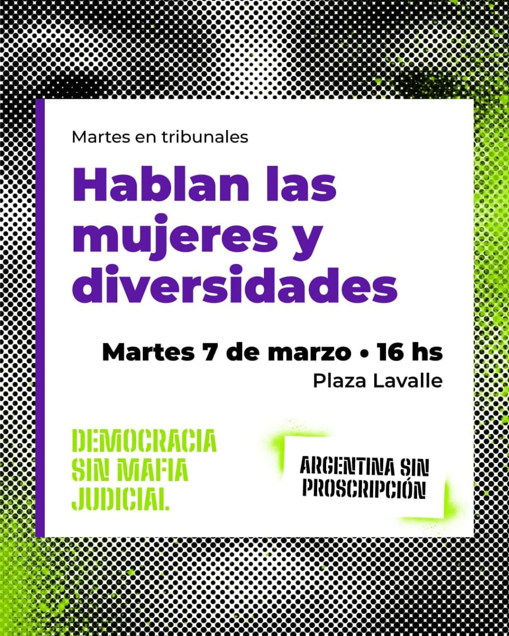 En la previa del Día Internacional de la Mujer Trabajadora, se realiza la segunda jornada de asambleas en Plaza Lavalle. En está oportunidad, se convocan a las mujeres y diversidades nucleadas en distintas organizaciones políticas, sociales y sindicales desde las 16 horas frente al Palacio de Justicia.