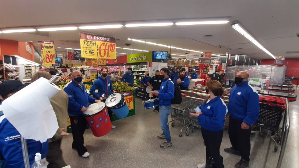 La medida gremial se llevó adelante en varios hipermercados de la ciudad y contó con la presencia de decenas de trabajadores, que ocuparon las veredas y los pasillos de los galpones para exigir una recomposición salarial en tiempos de crisis por la pandemia del COVID-19