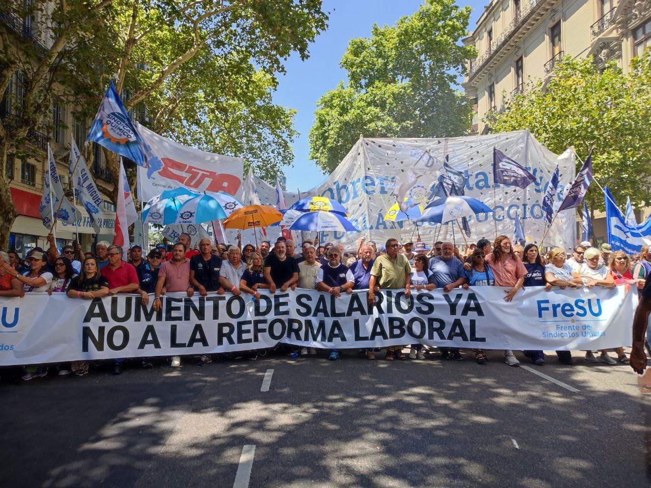En la jornada en que el Senado de la Nación trató la Ley de Reforma Laboral impulsada por el oficialismo, el Frente Sindical de Unidad realizaron un paro y una masiva movilización al Congreso Nacional. La protesta fue reprimida por un operativo de seguridad que intentó desalojar a los manifestantes con gases lacrimógenos, camiones hidrantes y balas de goma. “El Frente Sindical de Unidad nació para enfrentar y vencer la reforma laboral de Milei y de los gobernadores cómplices», planteó Hugo Godoy.