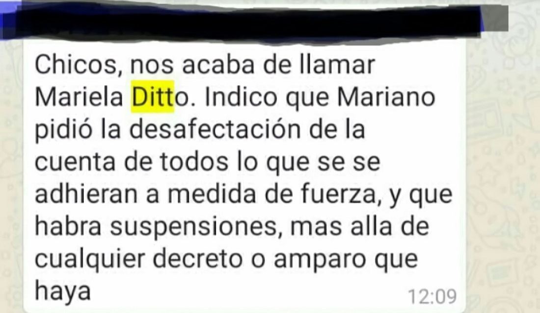 A través de mensajes, cuyas capturas de pantalla circularon rápidamente, les hicieron saber que los desafectarían de sus labores si encaraban alguna medida de fuerza para reclamar los pagos.