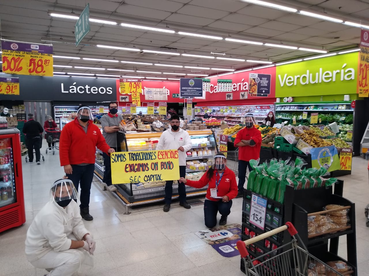 «Los trabajadores fuimos y somos esenciales y acompañamos con nuestro esfuerzo por eso exigimos el pago de un bono extraordinario», decían los carteles que acompañaban las asambleas y llevaban la firma del Sindicato de Empleados de Comercio de Capital.