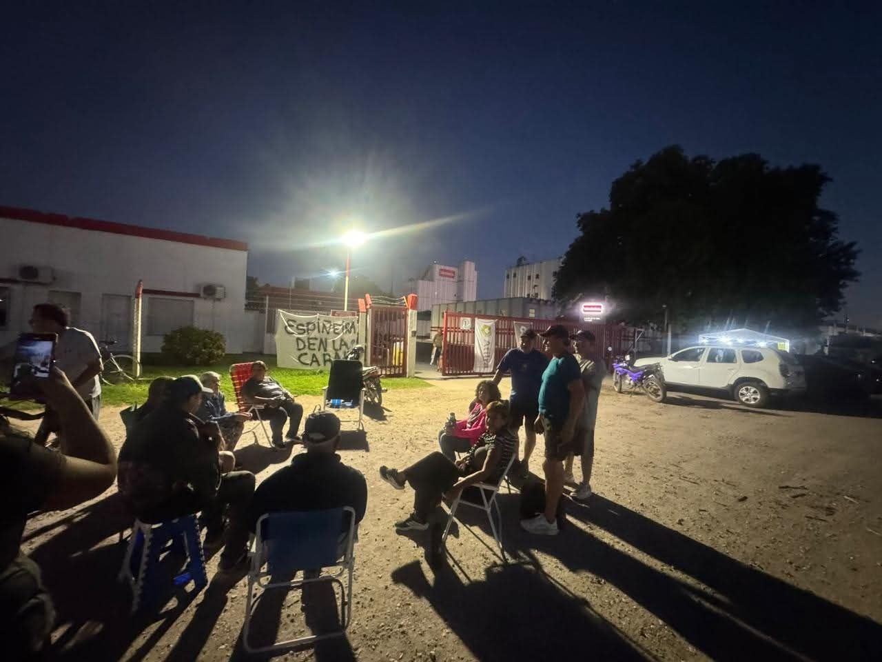 Según detalló, aunque siguen siendo empleados de la firma y cumplen sus horarios habituales, no tienen tareas productivas y solo permanecen en la planta para custodiar las máquinas. Ante esa situación, los trabajadores resolvieron instalar un acampe frente al establecimiento junto a sus familias, mientras esperan definiciones de la empresa.