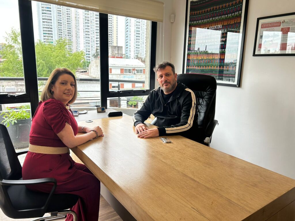 El secretario general de la Confederación de Trabajadores Municipales de la República Argentina (CTMRA) y de la CONTRAM ISP Américas, Hernán Doval, mantuvo un encuentro en la sede gremial con Rebeca Céspedes Alvarado, secretaria de Derechos Humanos de la CONTRAM ISP Américas y presidenta de la Asociación Nacional de Empleados Públicos (ANEP) de Costa Rica, perteneciente al municipio de Goicoechea.