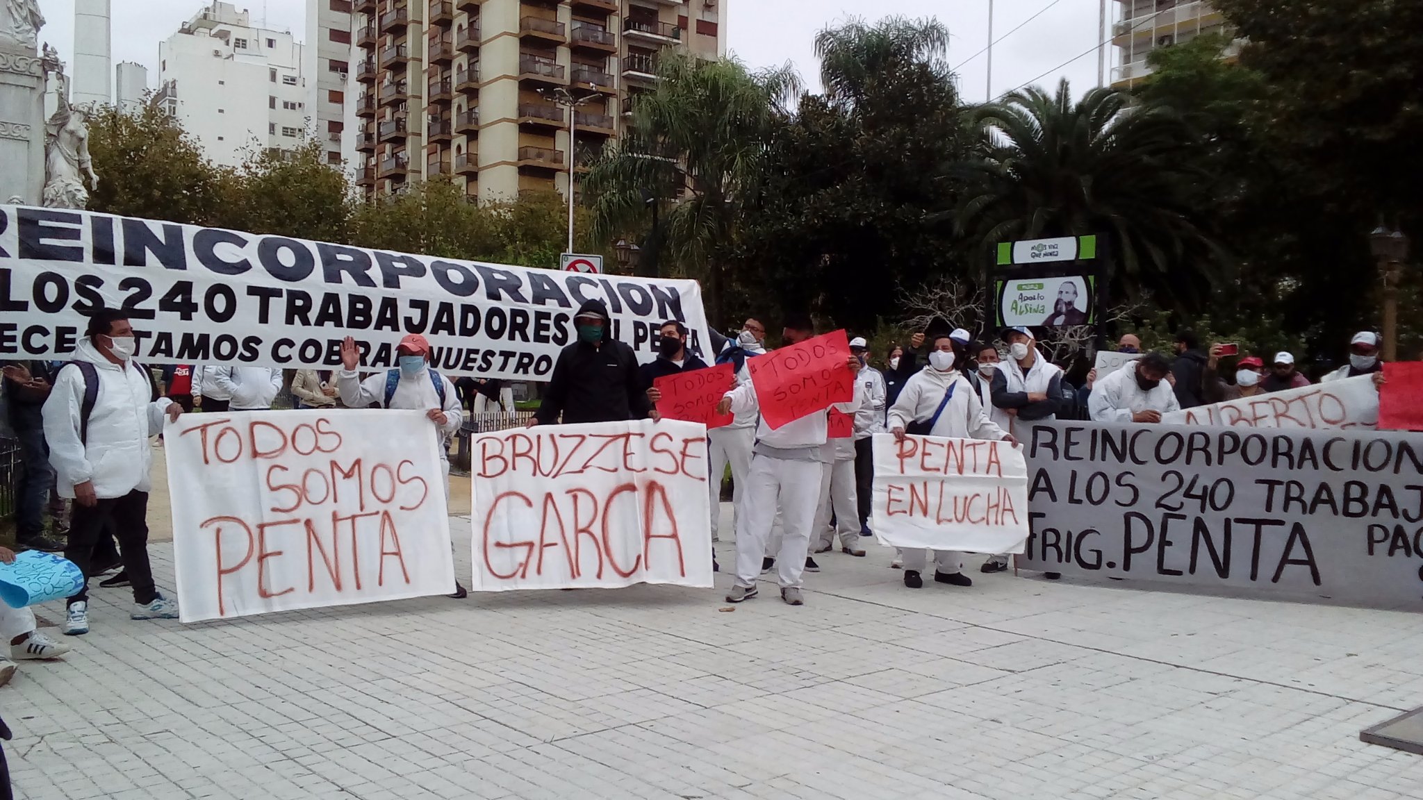 En pleno aislamiento social, preventivo y obligatorio, pero sin salarios, los 240 trabajadores del Frigorífico Penta establecimiento ublicado en el partido de Quilmes, marchan desde Avellaneda hasta Plaza de Mayo.