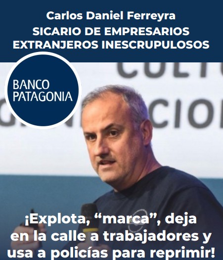 A casi dos meses de aquel episodio, el conflicto volvió a expresarse en el espacio público. Este lunes, trabajadores del Banco Patagonia colmaron de volantes la calle frente al Ministerio de Trabajo de Tucumán. En los panfletos, junto a una fotografía de Carlos Daniel Ferreyra, se lo acusa de ser un “sicario de empresarios extranjeros inescrupulosos” y de “explotar, marcar, dejar en la calle a trabajadores y usar policías para reprimir”.