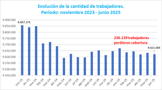 En el rubro del empleo, la Superintendencia de Riesgos de Trabajo reveló que entre noviembre de 2023 y junio de 2025, 236.139 trabajadores y 15.302 empresas quedaron sin cobertura en casos de accidentes laborales o enfermedades profesionales. Según especialistas, esta pérdida refleja un incremento de la informalidad y la precarización del empleo en el país.