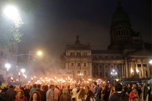 Los gremios del Frente Sindical para el Modelo Nacional, las dos CTA y las organizaciones sociales, encabezaron ayer una masiva marcha de antorchas por el centro porteño. La cita culminó con un acto en Plaza Congreso, donde se leyó un documento que rechazó los aumentos de tarifas y de los servicios públicos y la política de ajuste de Cambiemos.