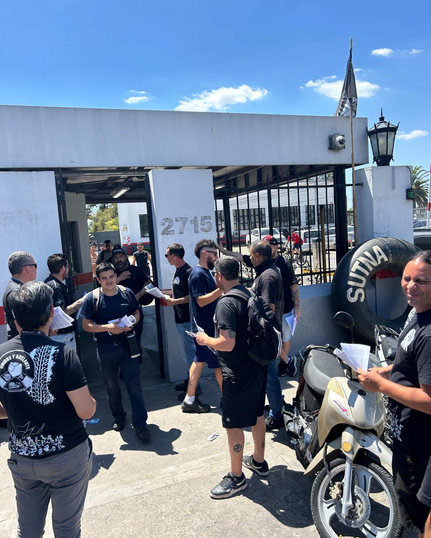 Este jueves, el sindicato organizó una volanteada para mantener informados a los trabajadores de las fábricas de neumáticos.
