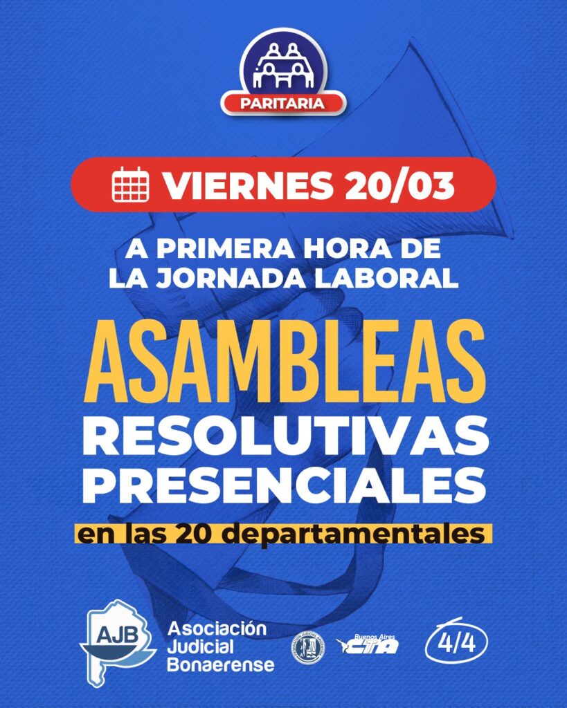 En este contexto, la AJB convocó a asambleas presenciales en las 20 departamentales del sindicato para el próximo viernes 20 de marzo, donde los trabajadores evaluarán la propuesta salarial y definirán los pasos a seguir en el marco de la negociación paritaria.