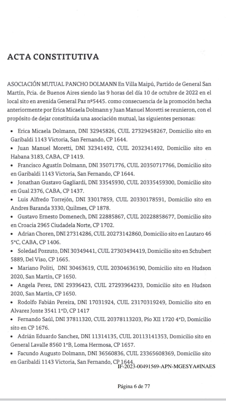 Ahora, bien: en 2022, los hijos de Francisco Dolmann, Erica y Francisco quien es secretario general de la Junta Interna, armaron una nueva Mutual a la que llamaron «Pancho Dolmann» y por la que cobran $10.000 mensuales para inscribirse.
