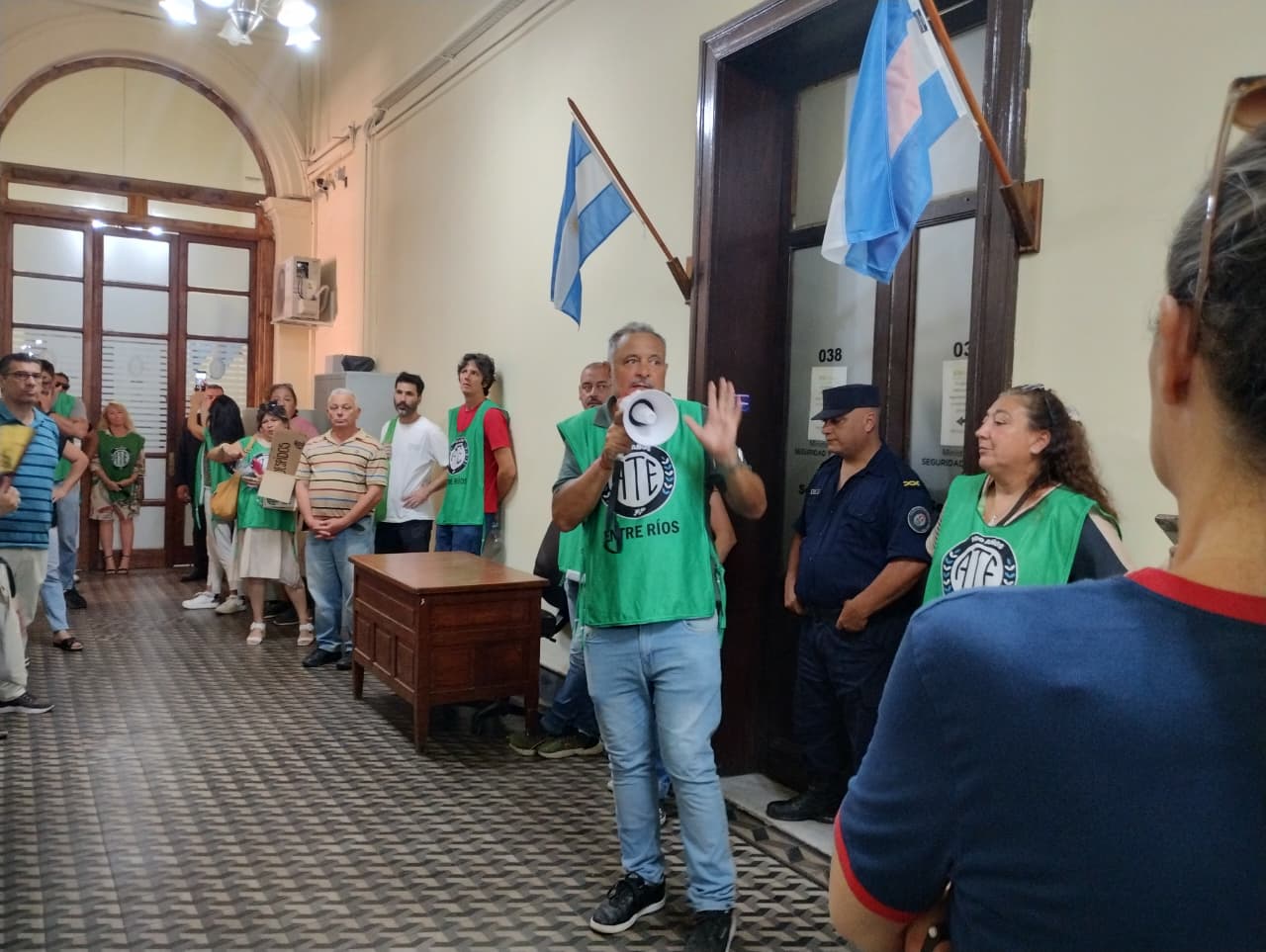 Los empleados nucleados en ATE ocuparon el patio central de la gobernación de Entre Ríos y realizaron una asamblea reclamando la renovación de contratos y la apertura de paritarias del sector.