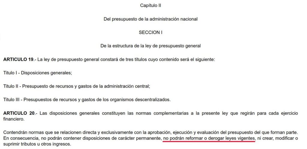 Sin embargo, la modificación corre riesgo de caerse porque la Ley de Administración Financiera impide que el Presupuesto «derogue o elimine leyes vigentes». Así y todo los diputados votaron tratar las modificaciones en el recinto.