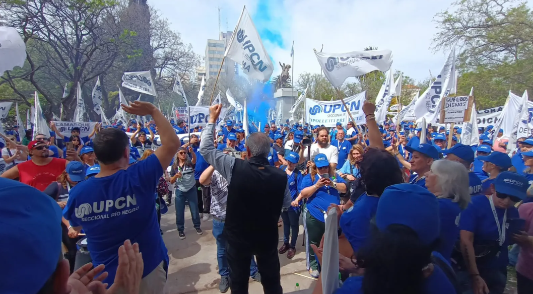 La ciudad de Viedma fue escenario este jueves de una sorpresiva y multitudinaria protesta de la Unión del Personal Civil de la Nación (UPCN), que reunió a más de 600 trabajadores y delegados de toda la provincia. La movilización se realizó frente a la Casa de Gobierno, en la plaza San Martín, como cierre del congreso provincial de delegados que la organización había iniciado horas antes en el complejo sindical ubicado sobre la ruta provincial N°1.
