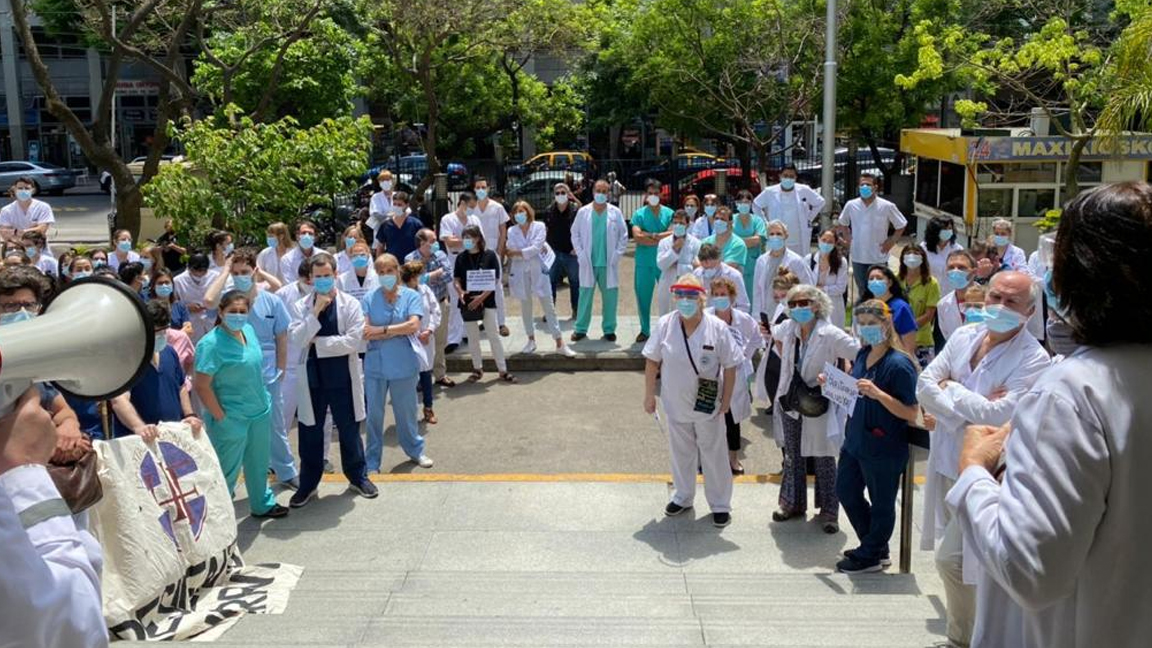 Los médicos y médicas municipales dependientes de la Ciudad de Buenos Aires movilizaron hasta el Hospital General de Agudos «Dr. Juan A. Fernández» para presentar un petitorio en el que reclaman un incremento salarial urgente a la Presidencia de la Asociación de Médicos Municipales, Dr. Alfredo Currás.