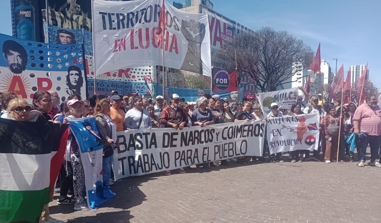 La Federación Nacional Territorial de la CTA junto a las organizaciones territoriales nucleadas en Territorios en Lucha, movilizó este jueves 9 al Centro porteño para reclamar trabajo y denunciaron que «el gobierno nacional da rienda suelta a narcos y coimeros, y hunde cada vez más al pueblo trabajador».