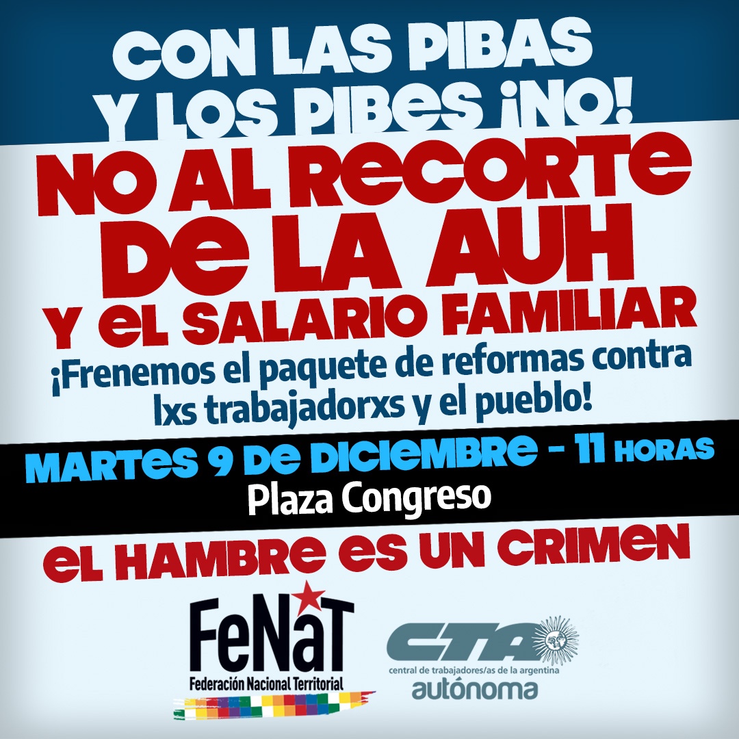 Organizaciones sociales y sindicales lanzaron una convocatoria para movilizarse el martes 9 de diciembre a las 11 en Plaza Congreso, en rechazo a los cambios previstos en el proyecto de Presupuesto 2026 que, según alertan, recortan derechos vinculados a la Asignación Universal por Hijo (AUH) y al Salario Familiar.