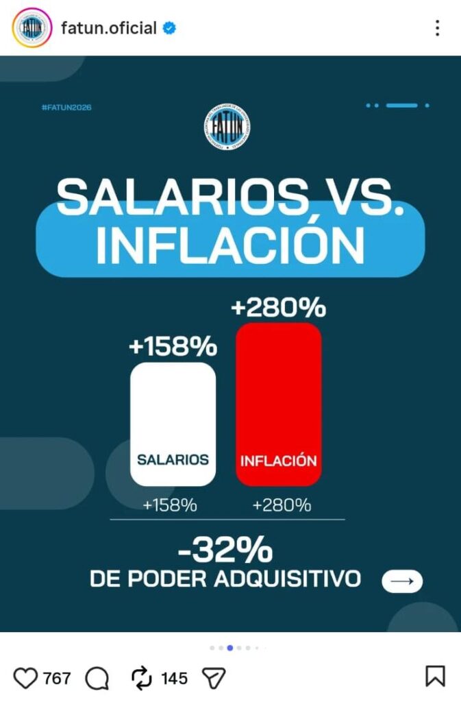 El secretario general de la FEDUN, Daniel Ricci, afirmó: “exigimos el llamado a paritarias para recuperar la brutal pérdida salarial, ya que llevamos 15 meses perdiendo frente a la inflación, y que el Gobierno cumpla con la Ley de Financiamiento Universitario”, y agregó: “no vamos a aceptar que se siga ajustando sobre la universidad pública ni sobre el trabajo docente; defender la universidad es defender el futuro de nuestro país”.