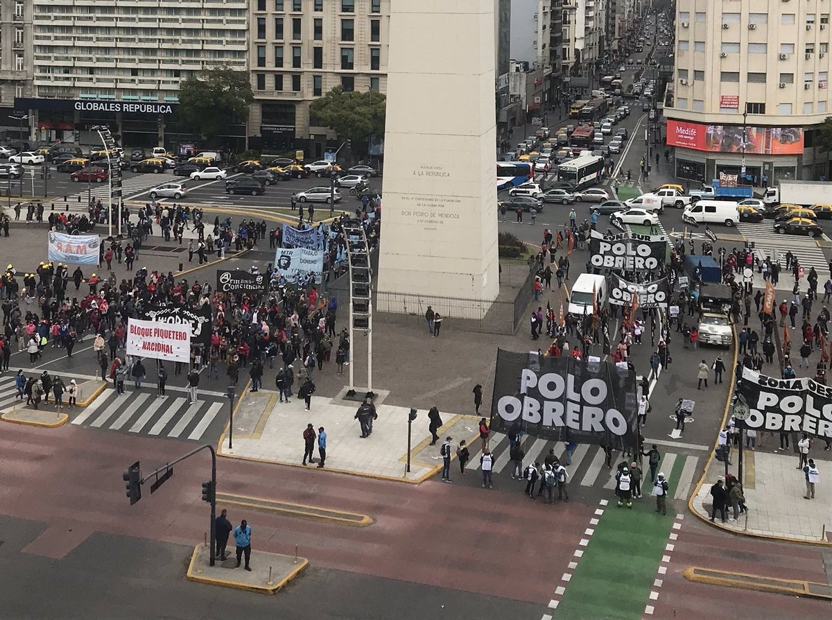 Por otra parte, el Frente de Lucha Piquetero, integrado por el Polo Obrero y el Bloque Piquetero Nacional, entre otras organizaciones, también se manifestó en el Obelisco en reclamo del «pago en término» de los salarios del programa Potenciar Trabajo.