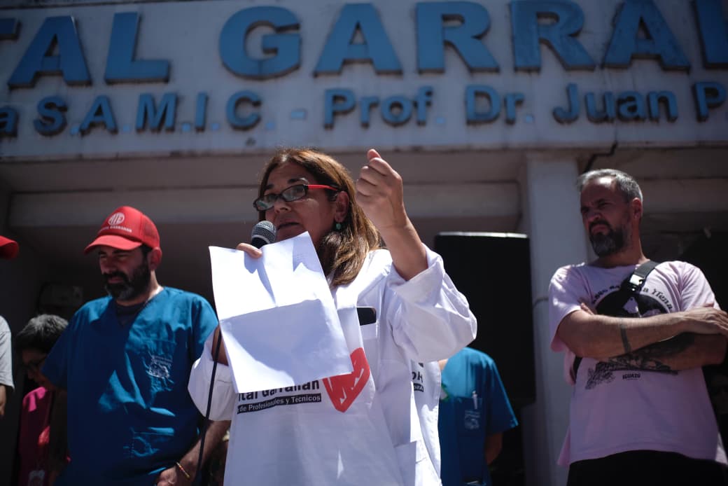 Durante la jornada, las críticas se centraron en el ministro de Salud nacional, Mario Lugones, y en el interventor político designado para el hospital, Mariano Pirozzo. Desde la Asociación de Profesionales y Técnicos (APyT), su secretaria general, Norma Lezana, denunció que las sanciones responden a una “lógica de revancha”, según expresó en un comunicado difundido tras la protesta.