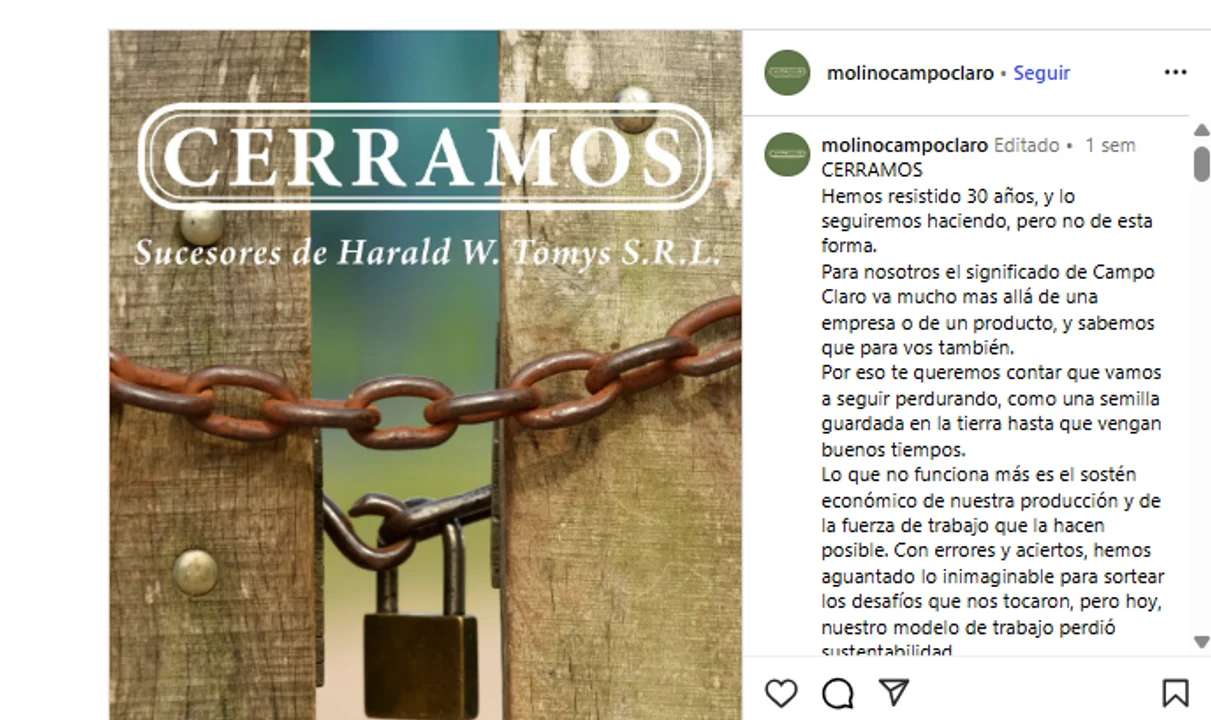 En su comunicado, la empresa señaló con crudeza que «lo que no funciona más es el sostén económico de nuestra producción y de la fuerza de trabajo que la hacen posible». Señalan que han resistido tres décadas enfrentando numerosos desafíos, pero que hoy enfrentan la pérdida de sustentabilidad debido a un contexto adverso.